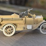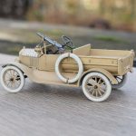 Reeds in een vroeg stadium raad men aan om de wielen te plaatsen maar ik hield deze voorlopig achterwege. Het voertuig op de kit cover heeft witte banden en ik wou hier wel eens iets meer over weten. Wat opzoekwerk leerde mij dat de vroege modellen T standaard geleverd werden met witte banden. Deze banden waren zeer geschikt op aarde- en grintwegen. Pas toen men begon met het aanleggen van verharde wegen in steen of macadam werd men gewaar dat deze witte banden gevoelig waren aan vroegtijdige slijtage. Ten einde dit tegen te gaan begon men met het toevoegen van de zwarte kleurstof welke de banden steviger maakte en nog later kwam het proces van vulkanisatie van banden. Vermits mijn Ford T in Palestina gebruikt werd bleken de witte banden dus historisch correct.