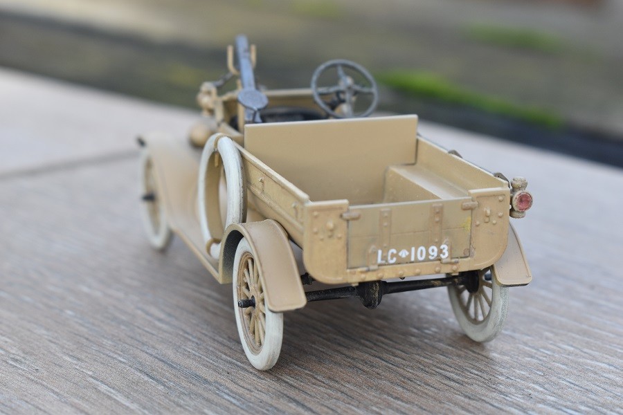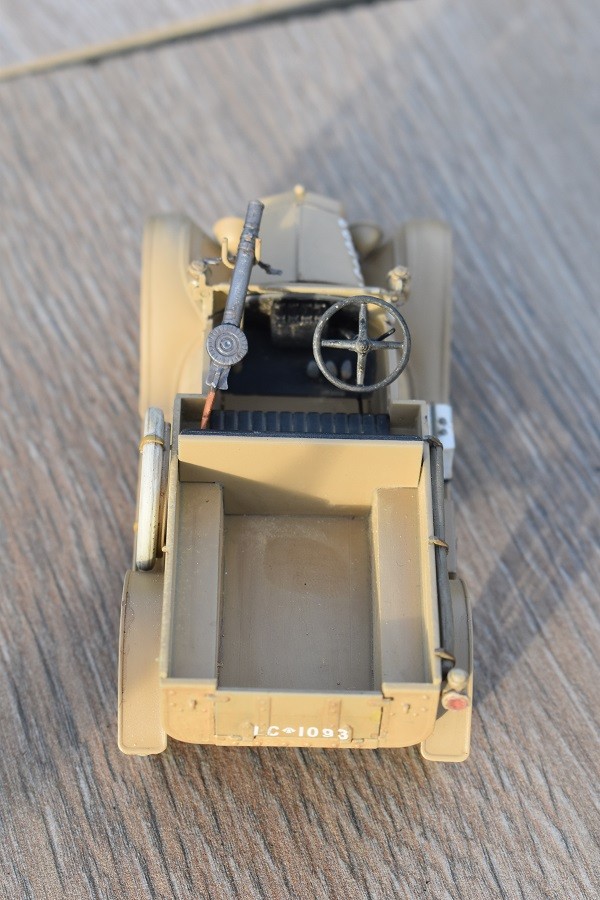 De zitbank van de bestuurder krijgt hierna zijn rugleuning en ook het statief voor het Lewis machinegeweer kan geplaatst worden. De afwerking gebeurd door het plaatsen van het reservewiel, een materiaal box en 2 waterblikken. Hierna de tot nu toe achter gelaten onderdelen zoals de lampen, slinger vooraan, Lewis gun en natuurlijk ook de wielen. De kit voorziet ook een opgevouwen bache hangende aan de rechter zijkant van de laadbak.