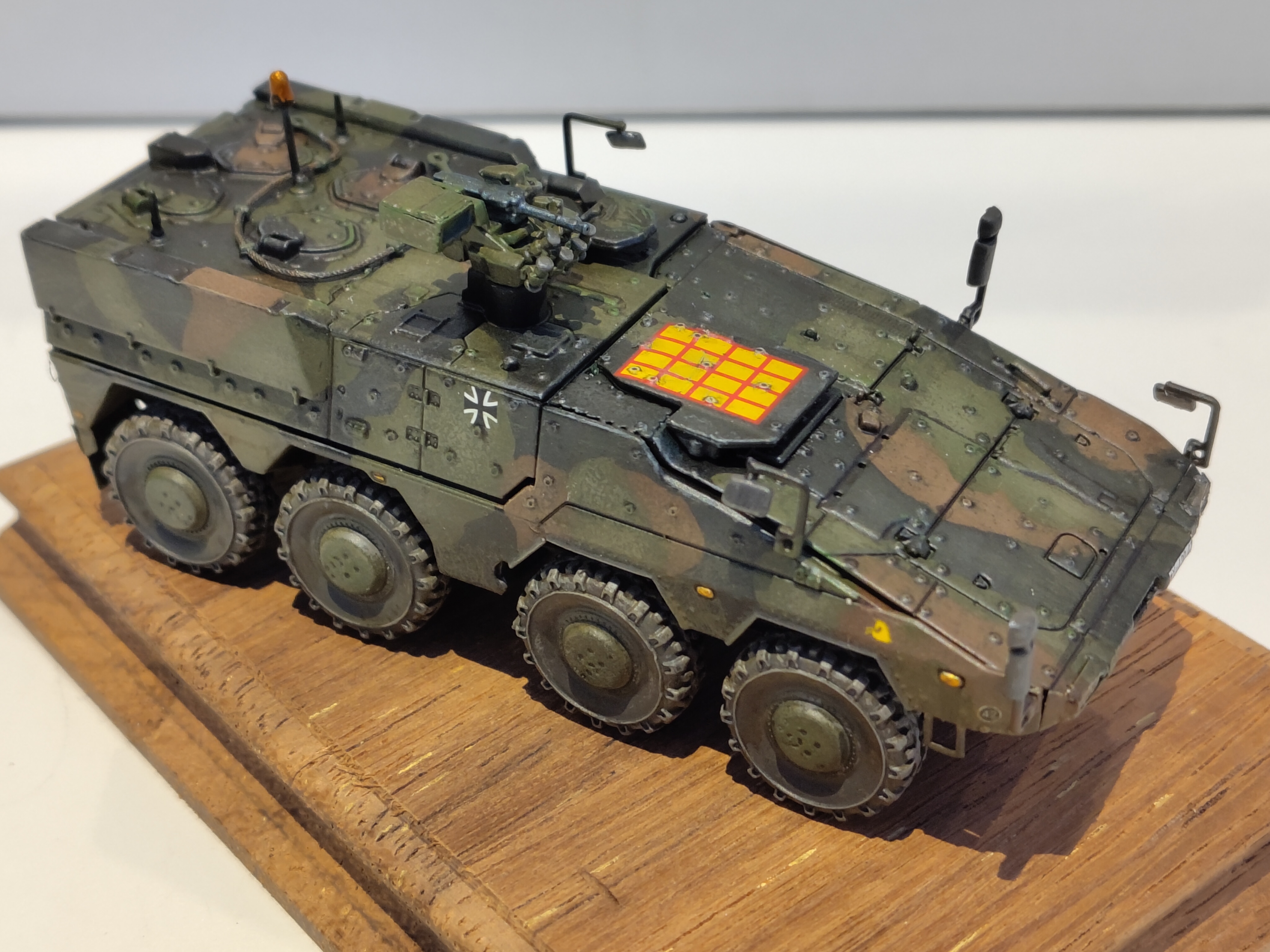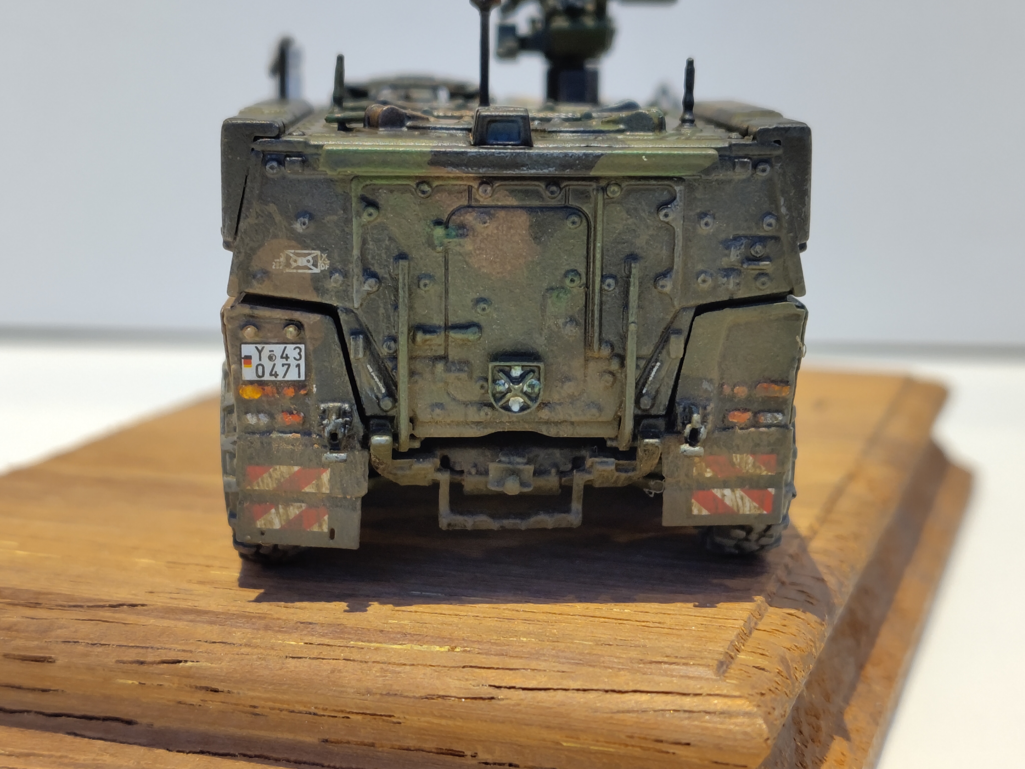 For my model, I chose a typical German version of the 93rd Panzer Battalion stationed in MUNSTER (GERMANY). It is a typical Revell kit with hard dark green plastic and just enough detail to do justice to the 1/72 scale. Although intended for this kit, the PE set did not always fit well and not all pieces fit the original kit equally well. There are a few options in terms of armament and I chose the 40mm GMW (automatic grenade launcher). The kit can be built as in real life with the driver’s module and the mission module. For the daring, this could become a beautiful logistical diorama where the mission module is being dismantled….