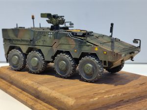 This small 1:72 scale kit from Revell (Nr. 03198) is a 2014 release and depicts the GTK Boxer used by the German Bundeswehr. The armoured vehicle is manufactured by Rheinmetall and consists of two modules, a driver’s module and a mission module. Several countries have purchased the Boxer, including Germany, the Netherlands, Great Britain and Australia.